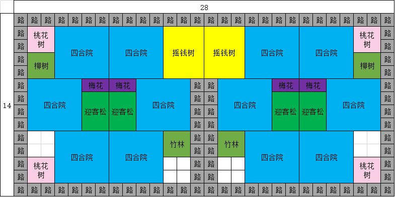 开局推荐1个8*8的农田,2个伐木场,然后造四合院。