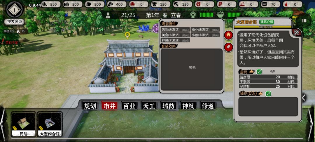 这时候得注意商行了,如果发现有药草,先买着,但不要买方剂。等级一高,小人生病了,你也没种药草,商行也没有。后面看自己情况自行解锁。