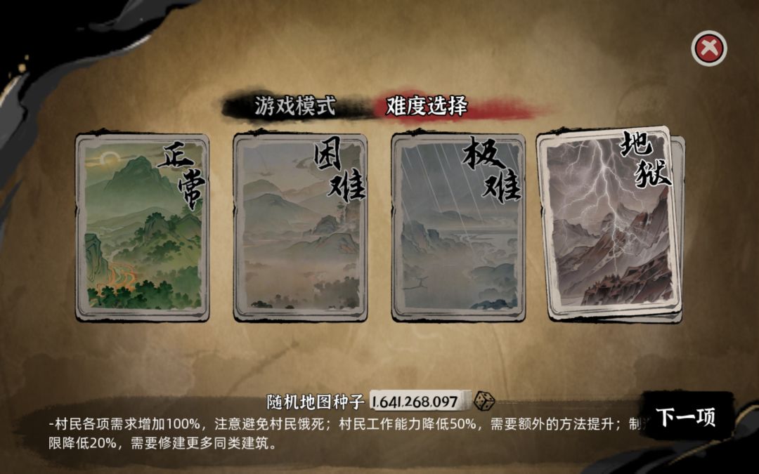 这里有两个难度开局方向,“困难”和“地狱”,选择正常难度的玩家参考困难。