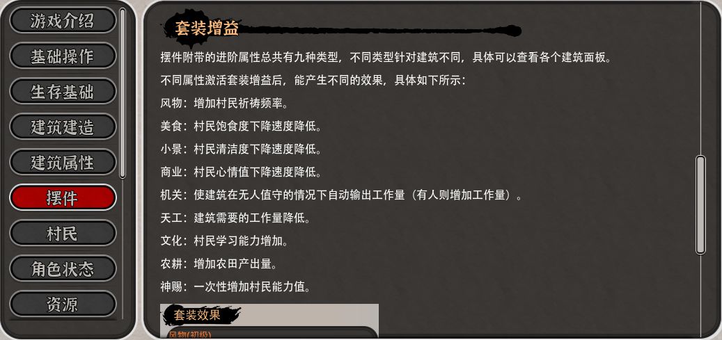 风物、商业、美食、小景、神赐,满足6/12分别给一个buff效果和自身效果(效果重复不显示,有些可重复)。