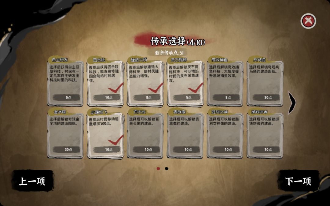 四合院,建造大师,灵石提炼,步履如飞,水培农场。共48传承点。