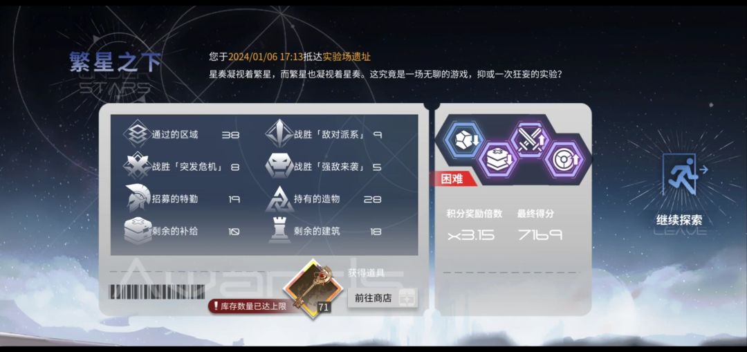 结算界面的统计会包含初始资源(特勤、造物、补给),但计算最终得分时会扣除初始资源再进行计算