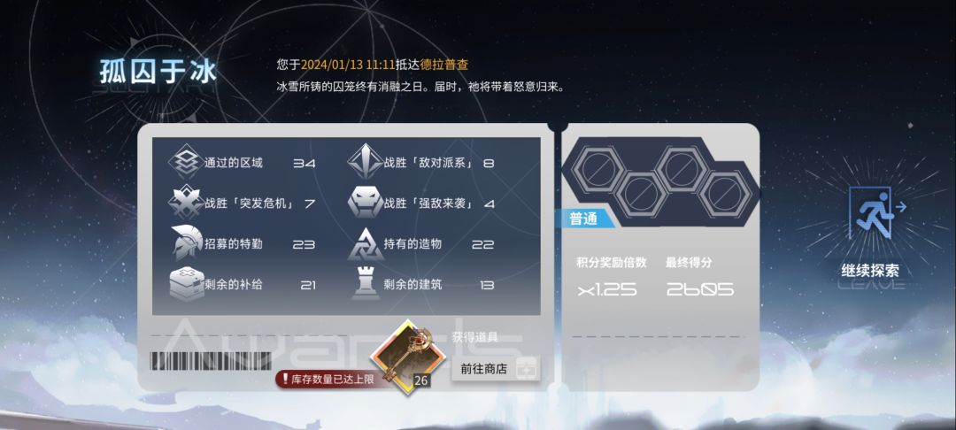 二结局孤囚于冰分数比普通的强敌来袭多40分,即260分。而且选择困难难度无法进入该结局!!