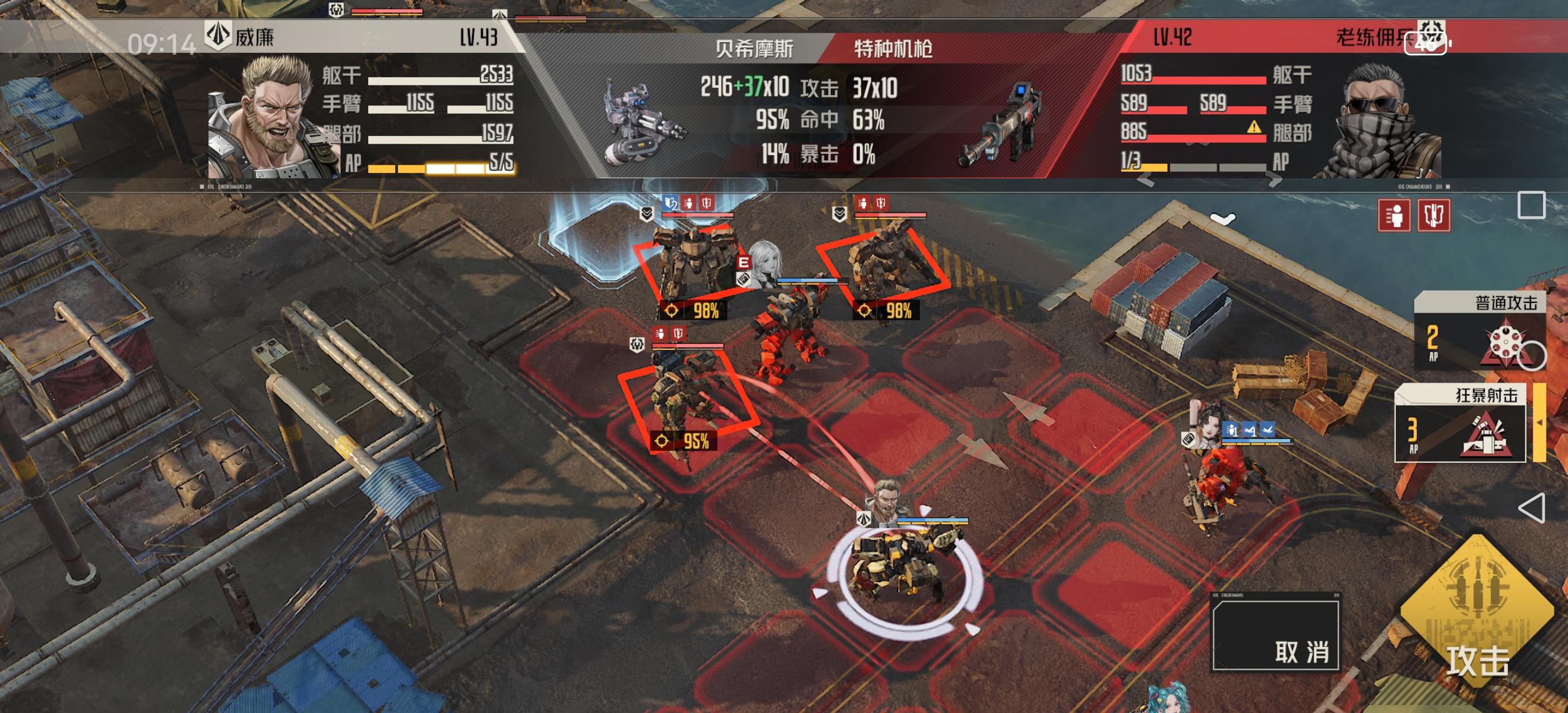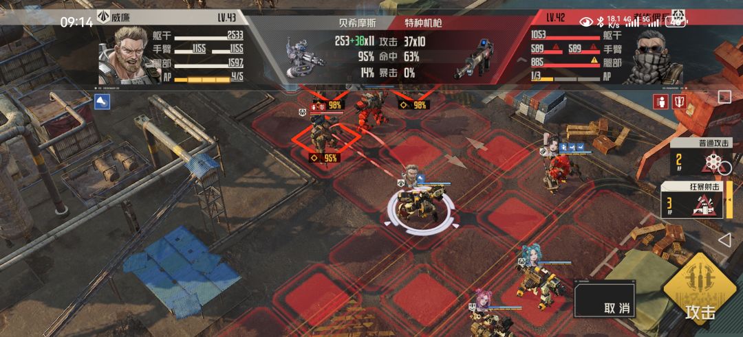 绿字是最佳射程追加伤害,威廉架起后打11发,非架起打10发,数据可以看出来哪怕比怪高1级威廉命中率依然不够,加上白月专机赫拉克勒斯的12%减闪避光环都没到100%,因此威廉上命中模组收益最大。
