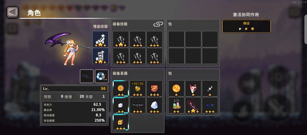 后来对瞄准技能的圣器搭配有了思路,试了下正义之剑,用了赌徒协同重复触发技能,普通能玩,狼王打到负血,但感觉伤害还是低,数量比冰箭多,攻击有一秒延迟,还想试着玩玩死亡射线来着,但没有好的圣器适用,正义之剑找到个王室徽章可以用,虽然其他物理圣器会失效,但我只带这一个物理圣器不就行了…(主要为了水贴,冰骑两天解锁出来游戏就很简单了)