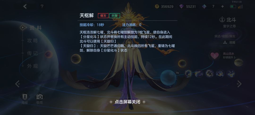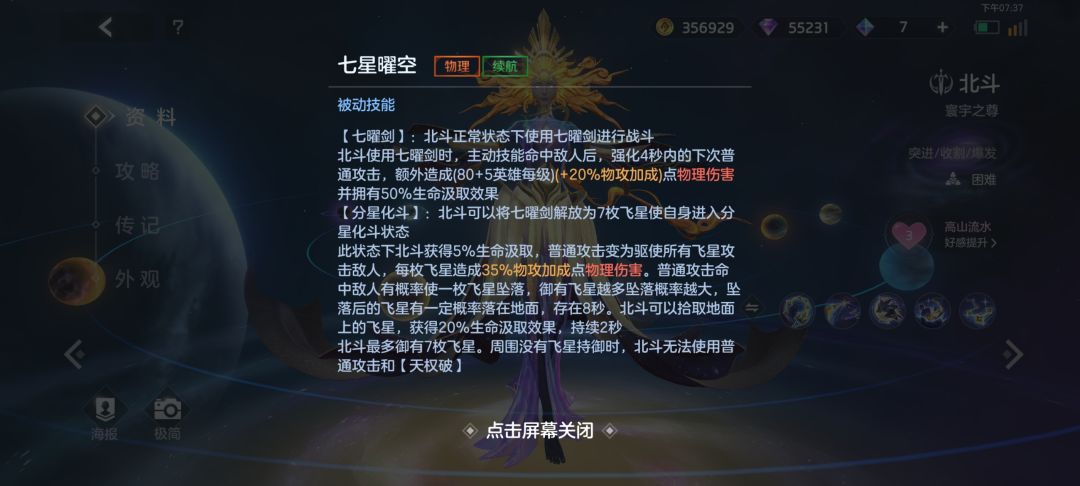 北斗的被动技能叫做:七星曜空/天枢解(天璇归)