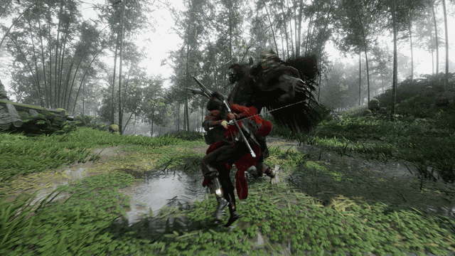 不谈什么偷师学艺、支线剧情。光是在Boss战这块儿,只狼破戒僧般的带连环快慢刀的攻击手段,能连人带马一起踹翻的斩杀演出。