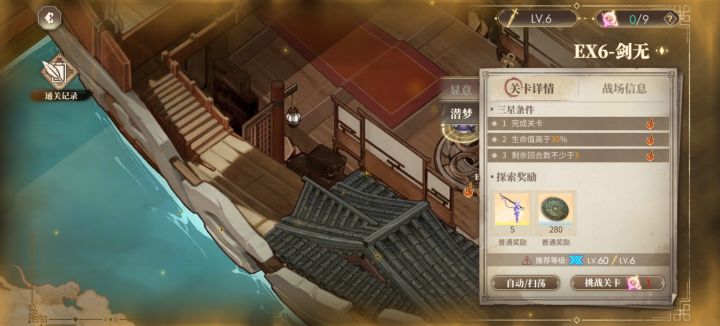 无童谣座,用的这个阵容打的EX6三星,过的很极限,剑气也是刚刚好打够数量。运气也不能差,几乎不允许boss四周有剑气挡路。