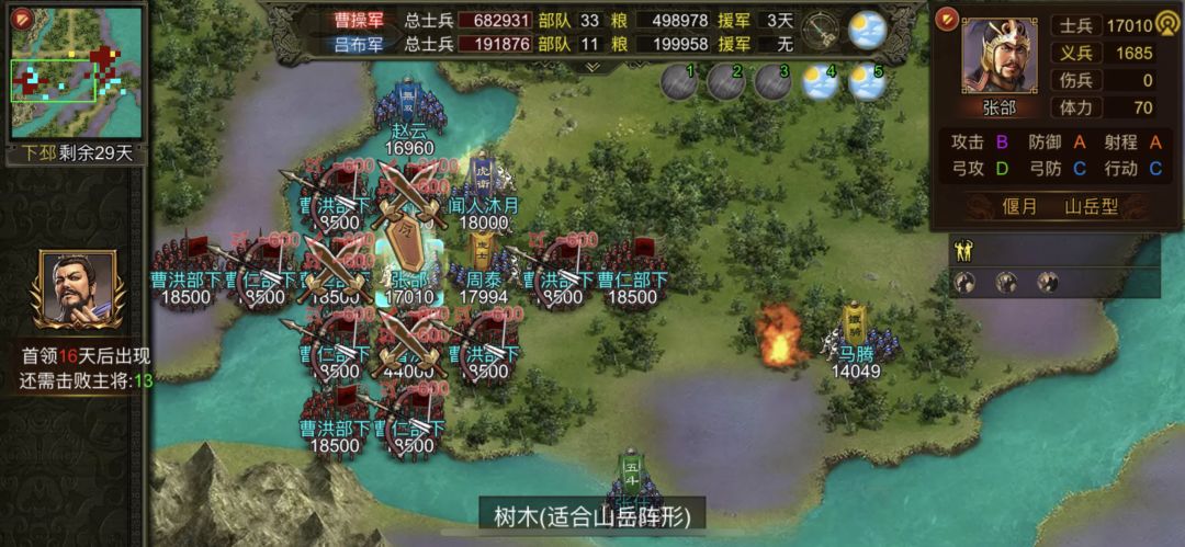 首先开局如图站位及布阵(需要刷晴天最好有起码4天),如图1所示,让陈登打到周泰。下路2射手疾行去帮忙打第2天。