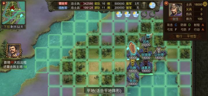 第3天正常陈珪也会过来,利用射手射大戟士援攻打他,大戟士和无双不要用晕,因为需要站位打曹仁,如图5站位。