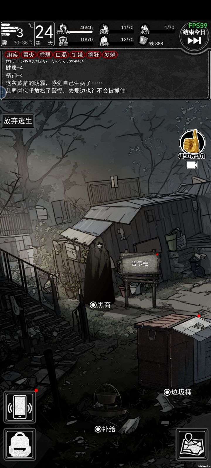 如题,有水不喝,有饭不吃,有药不买。所有npc好感都是0,最后钱财剩888~苟活到24天,主打一个过的苦玩的花~