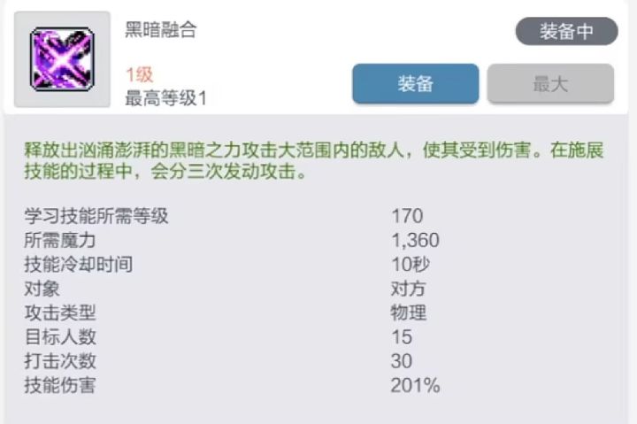 1.在黑骑的170级会解锁【黑暗融合】,可以和眼魔搭配成技能组,因为CD都有10s,所以不影响使用。