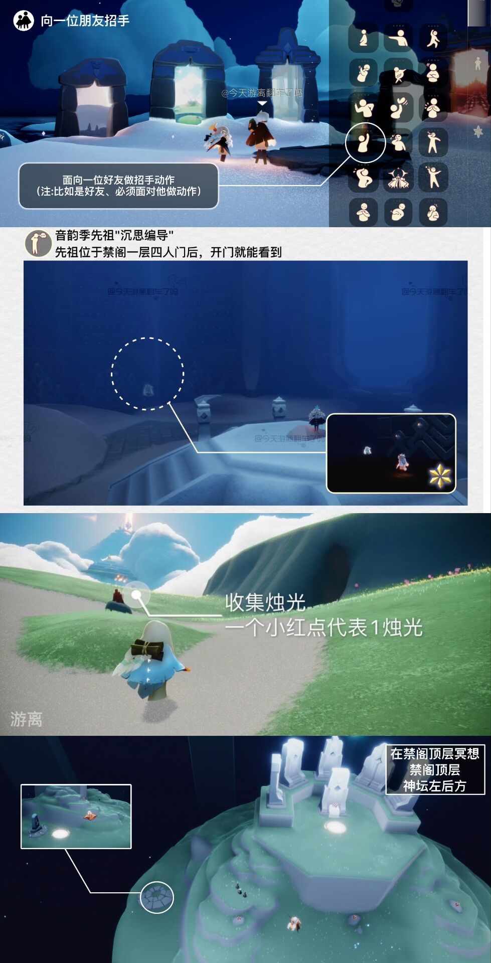 《光遇》游戏中每天的每日任务及大蜡烛的位置都不相同,玩家完成每日任务及收集大蜡烛都可以得到丰厚的兑换奖励,奖励可以用于兑换各种动作及道具,不过很多小伙伴不知道每日任务怎么做,又懒得自己去找大蜡烛的位置,我们汇总了每日任务的完成攻略以及蜡烛位置,一起来看看吧!