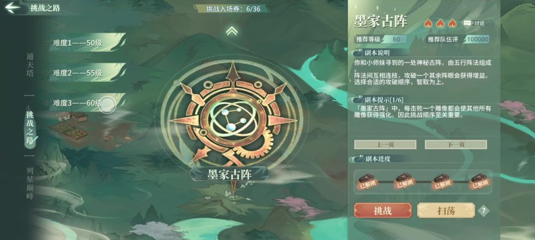 墨家古阵是南山的优势本,我带了霓裳来增加速度,其实也可以单挑。这个本是刀魔的难度本。霓裳的配置可以在tap搜索“pve十大辅助”排名第一的就是。(霓裳的核心装备是王大爷棍,核心武学是观音手)