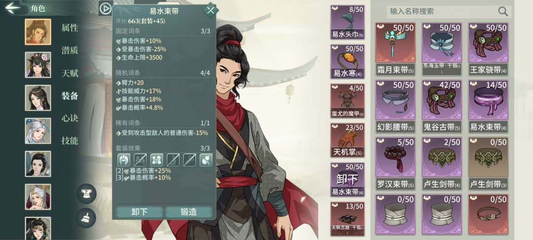 两个核心装备,虽然是50洗练,但是最重要的臂力并没有洗满。