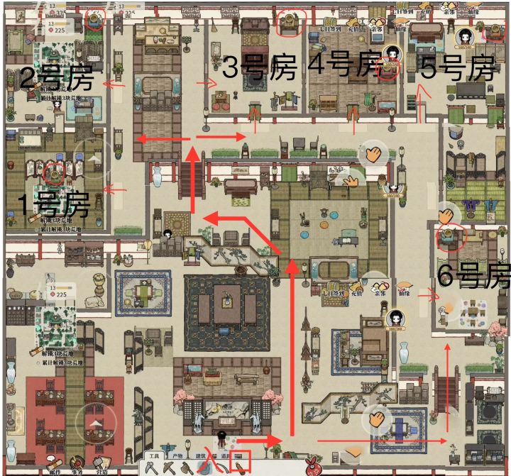 以下位置仅供参考:队长,也就是一号位的家在上楼梯以后左转再往下走的那间(左下位),别的试不出来,盲猜是一号位的上面那间是二号的,上楼梯右转并排两间分别是三号四号的,右边走到底再往下走是五号六号(已更新自己拼的全景图,手机拼的有点烂将就看看