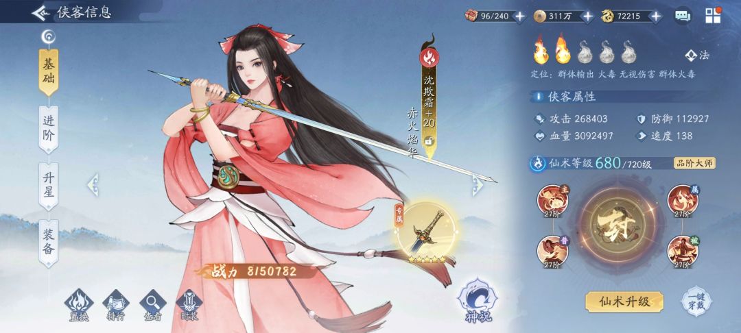 紫萱至少10星,27阶被动,速度>150,攻击越高越好,是否带运运,酌情考虑