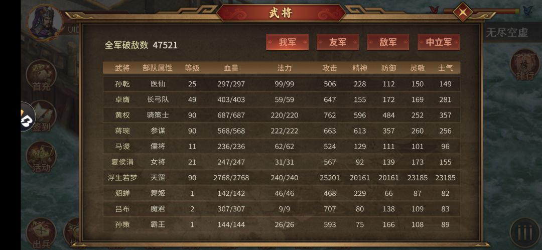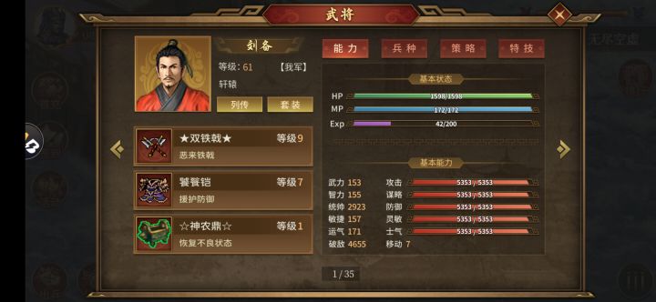 熬战两天终于拿下了神印,没有刘备皇天,就拿饕餮甲保人,没有兵仙破不屈就拿4本孙子批不屈的,特别是白门楼没有法必和破不屈的只能一直sl,蜀国13神将到的时候只能疯狂卡位和分散位置,就白门楼就打了5小时,好多都是最后一回合结束的,全靠天罡浮生带个锐,刘备指望不上面板就5000防都破不了,幸好看了大佬打赛亚人那个攻略,不然最难的那两关赛亚人根本打不了,写一下我的心得:上面有我的面板属性。