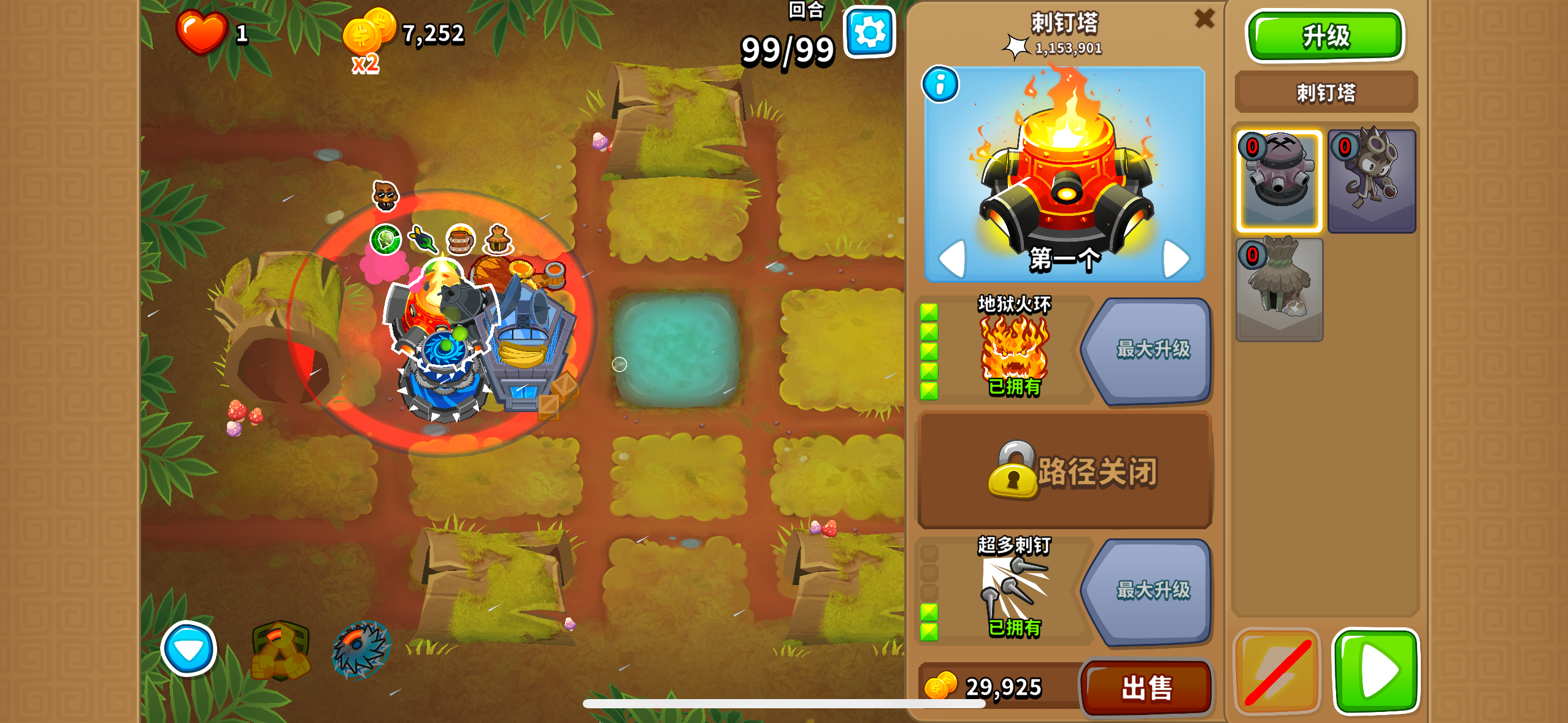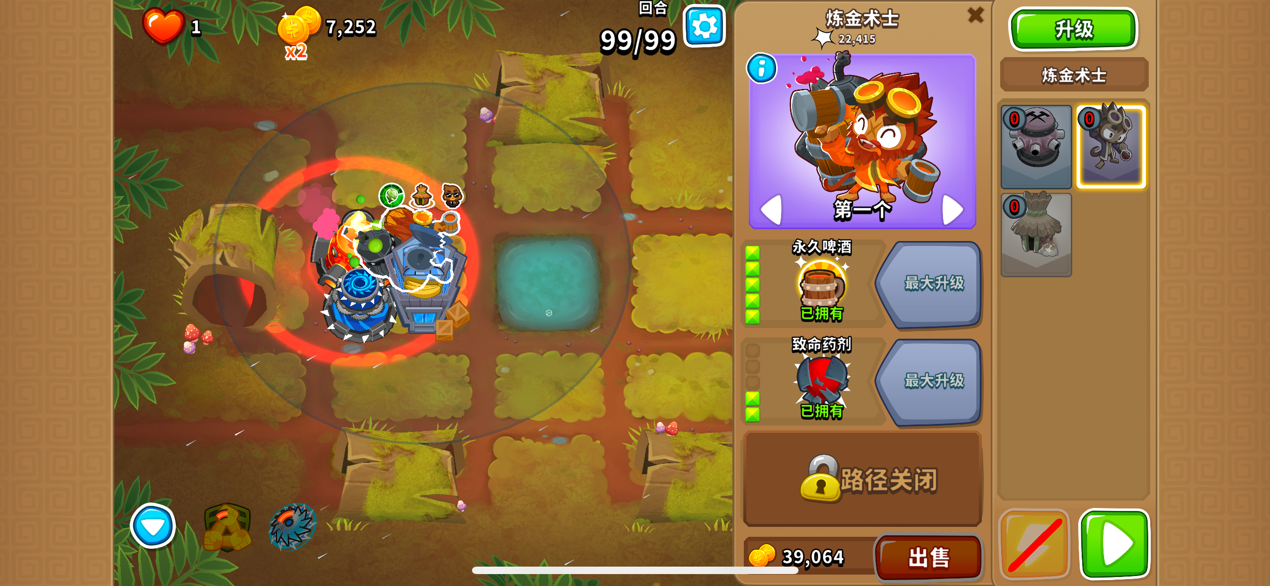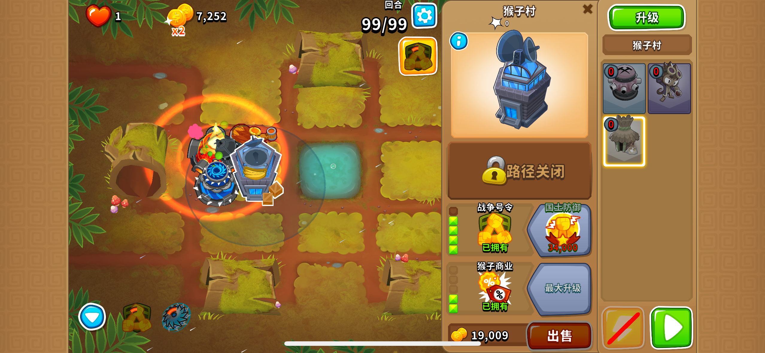 1.7高级挑战,先放002猴村,然后两个刺塔升满,再来一个420啤酒,有技能就放,攒钱升520啤酒就过了。