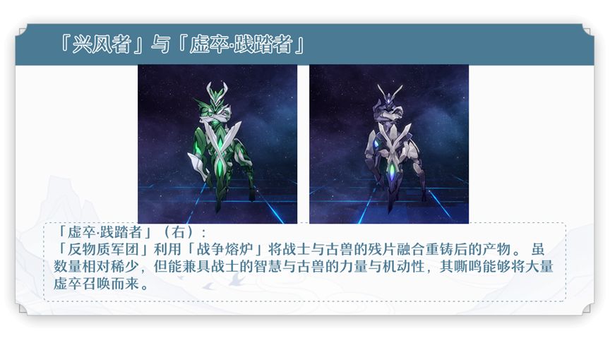 开拓者们清理反物质军团时遇到的「兴风者」和「虚卒·践踏者」就是半人马,暂时不清楚是不是绝灭大君转化奴役了部分慧骃族所形成。