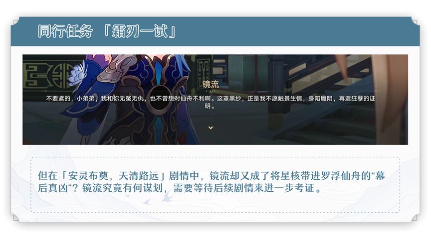 而后,他应镜流之邀,加入了她的云骑军小队,并成为了镜流的徒弟。