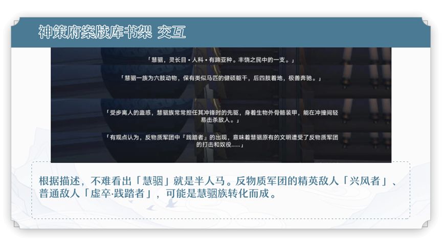 而「破坏丰饶联军中慧骃族与造翼者的同盟」这一条,在当前版本并无文本可考,我们仅仅知道慧骃族是半人马,造翼者是长着翅膀的羽人,它们都是丰饶民联军的主力之一。