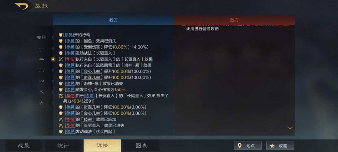 可行的下位替代有:没有横征的情况下,于禁可以换成夏侯惇,携带铸甲销戈或者避其锐气。没有徐晃、张郃的情况下可以使用许褚作为主C,技能考虑万夫+勇冠。切记:不可以使用王异作为这个打法的主C,因为王异自带战法的倍率较低,会浪费掉暴击。使用王异的情况下,可以考虑用荀彧做辅助,于禁带上任人择势,效果应该也不差,不过笔者没有捞出荀彧,所以无法测试。下位战报大概如下情况,其实也不差,技能几乎全缺的情况下,仍旧是战损较低的情况下开了九级。