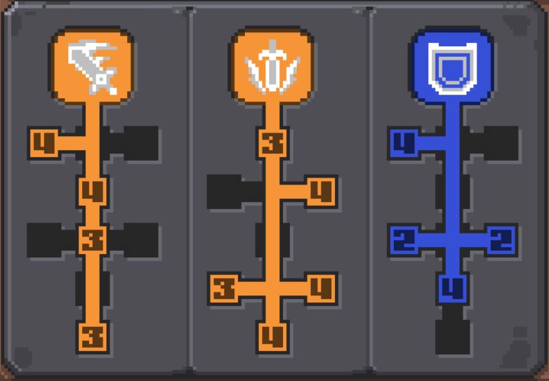 然后说说守卫这边的加点。不加无敌是因为我们跑图领主不爬塔,纯打金(用来开荒,以及刷装备卡片养忍者或者德鲁伊)。呐喊就能扛得住怪物,没必要带无敌。