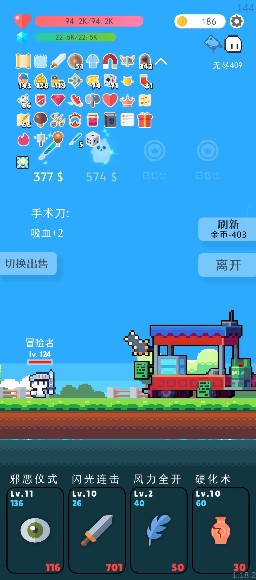 买了五个手术刀1个骰子撑下吸血 420层去刷个女神戒指吧,400层都没出....我这破运气