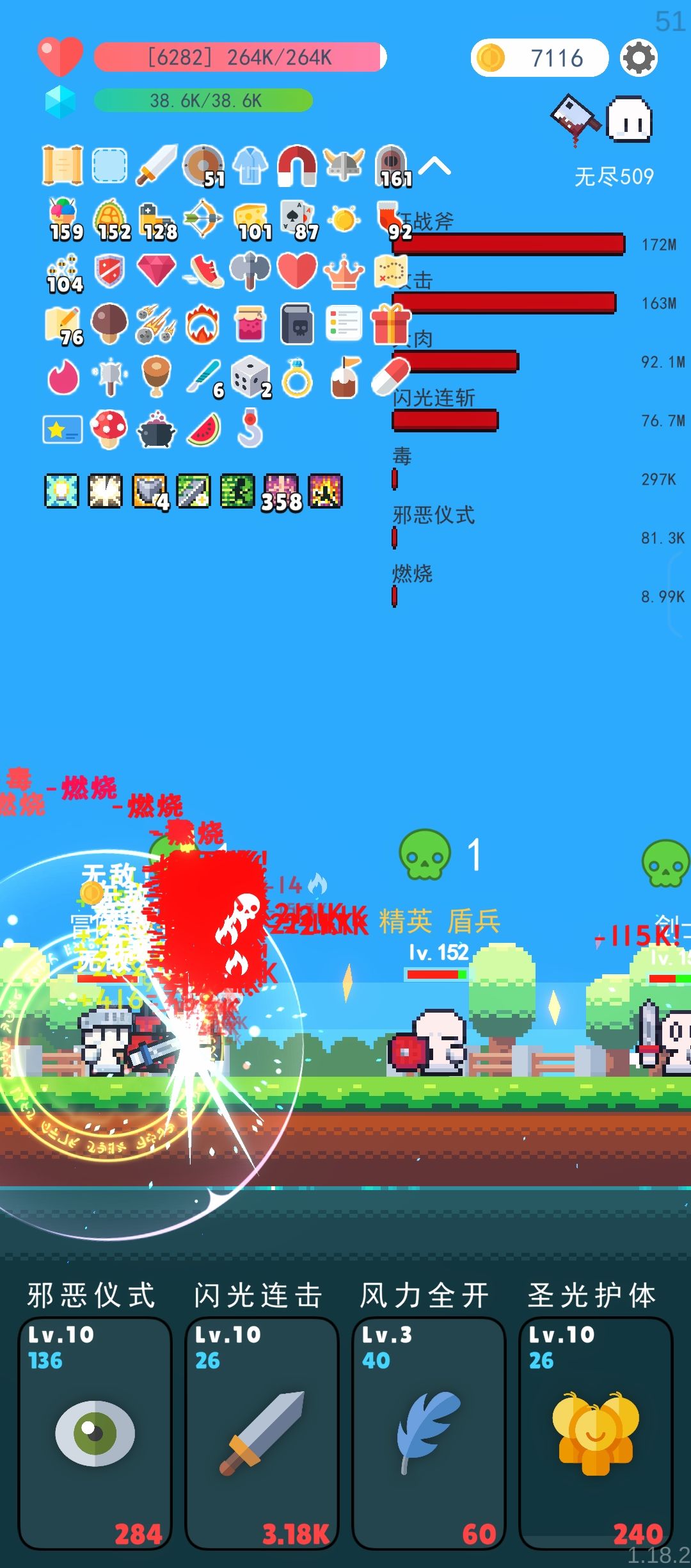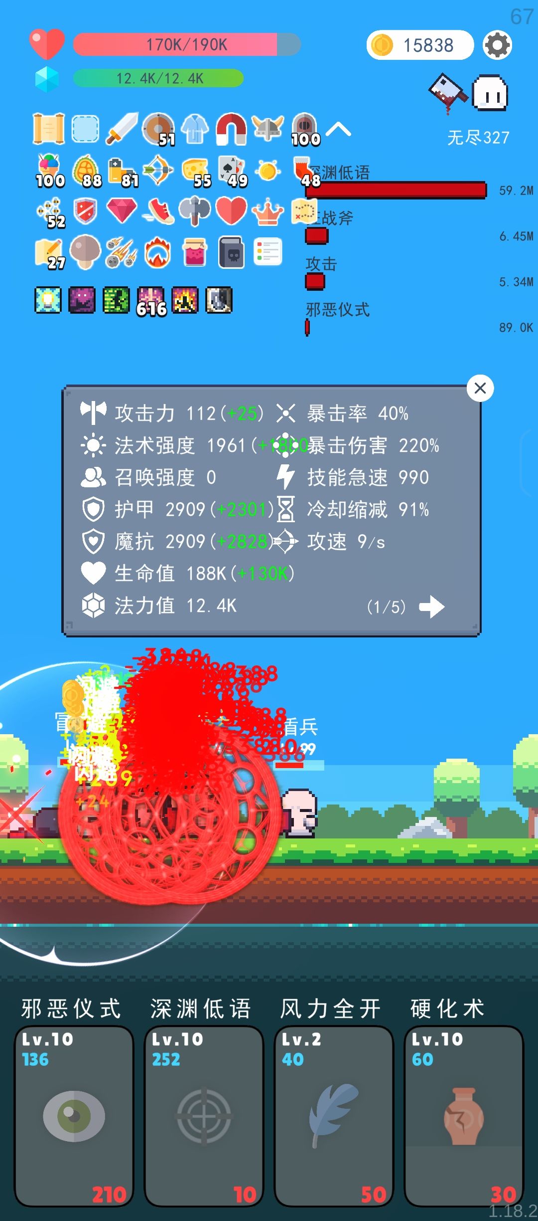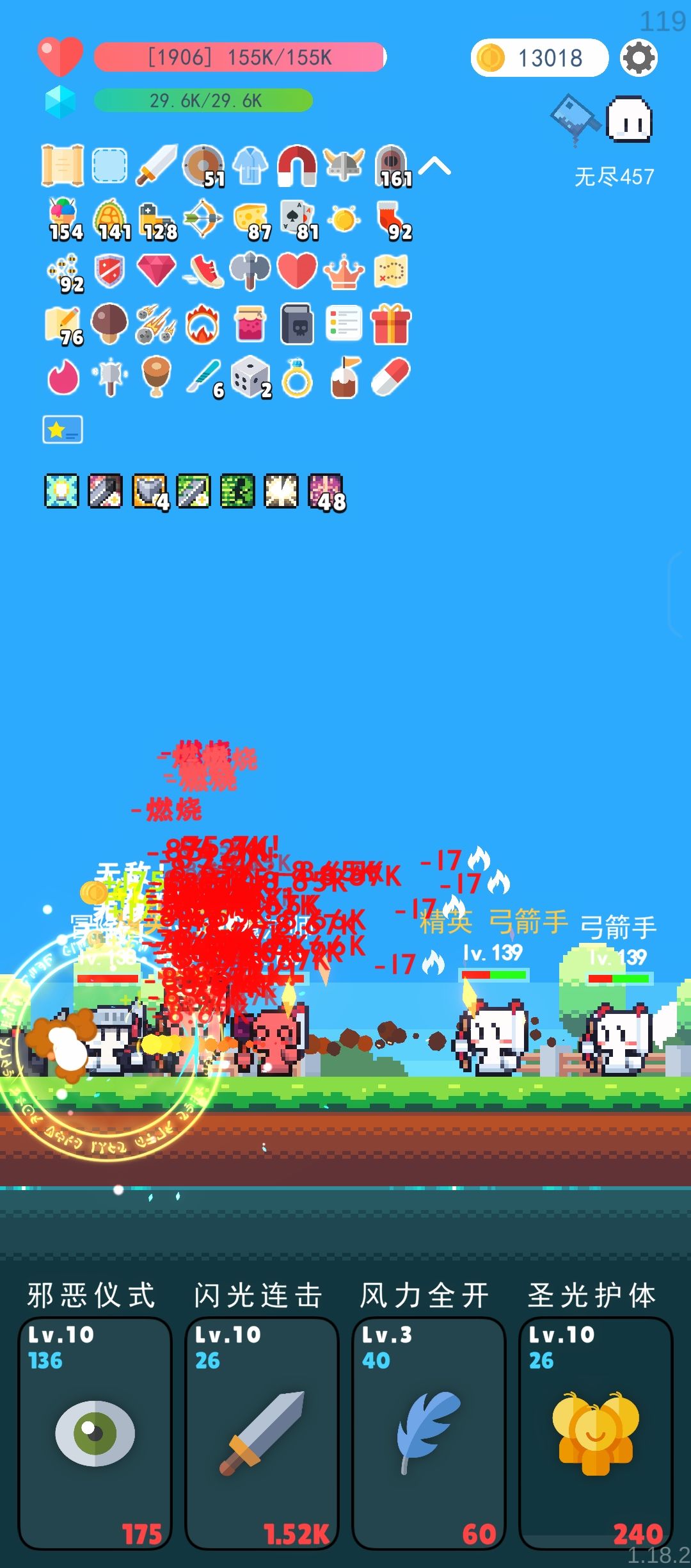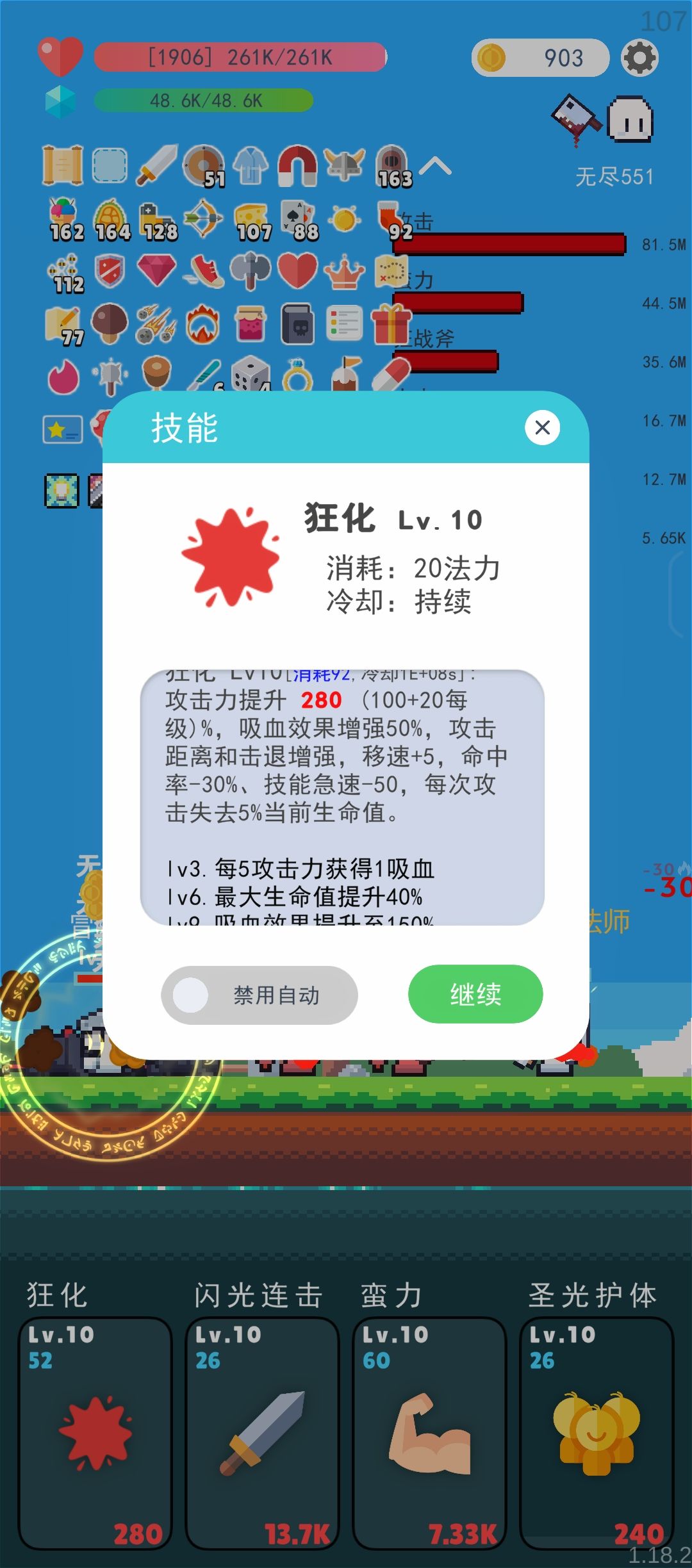 相信玩到这就能理解为什么我之前转职要拿狂战士不拿更肉的龙骑士,明明在堆生命防御为什么要买增伤了。在有圣光护体无敌的情况下,可以完全放下那些生存负担,全力输出就好了。