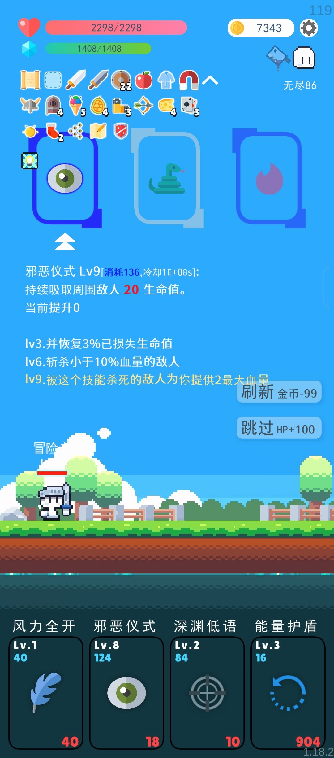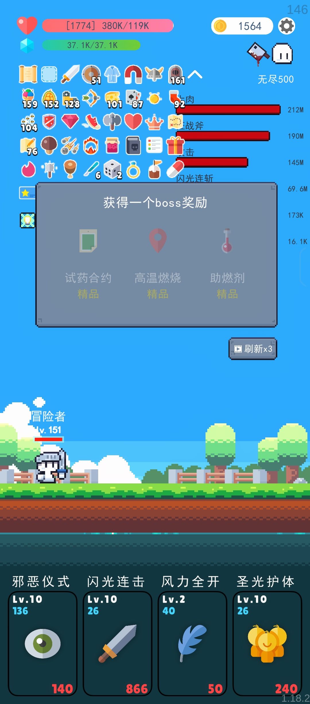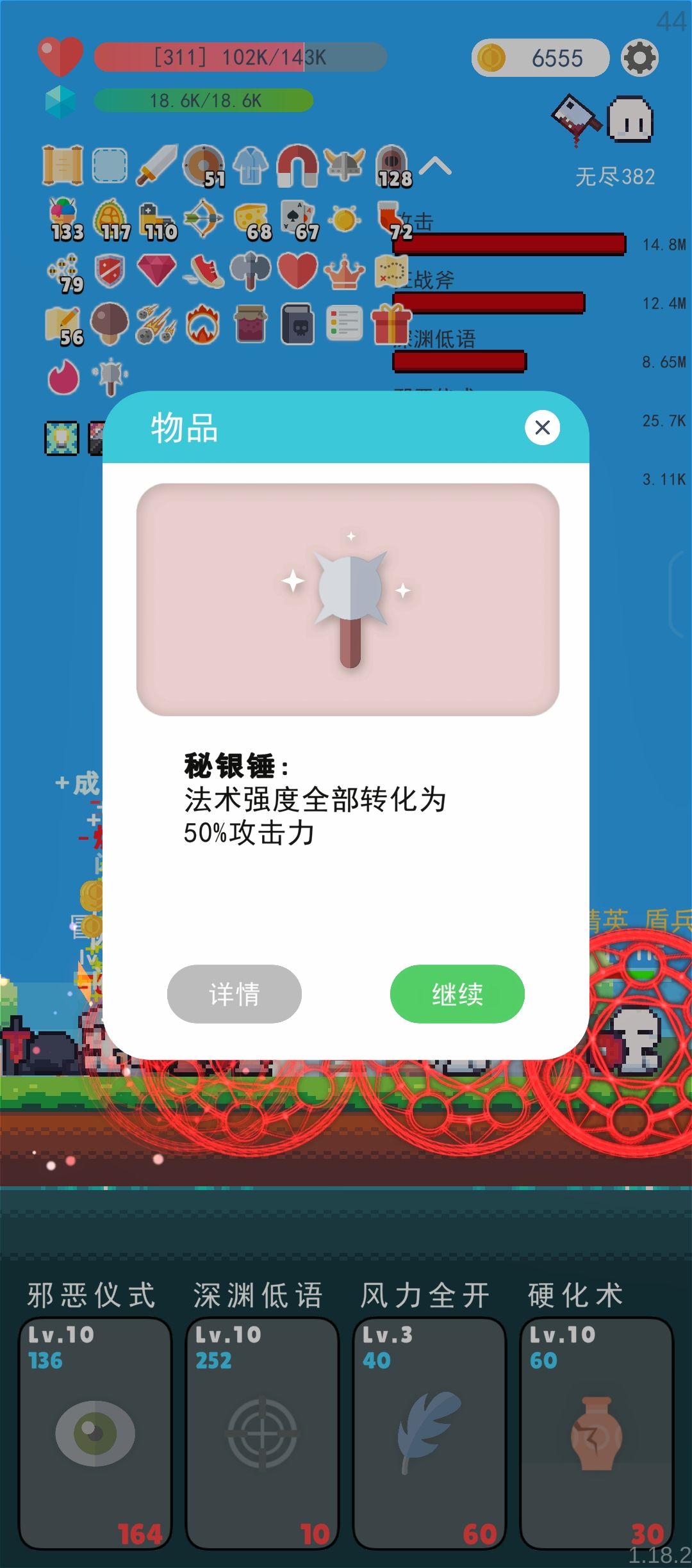 2. 想冲榜的话尽可能在暴毙边缘贪刷属性,晚换输出技能/道具 重复的BOSS道具出来的时候第一时间刷秘银锤+血钻+黄铜王冠