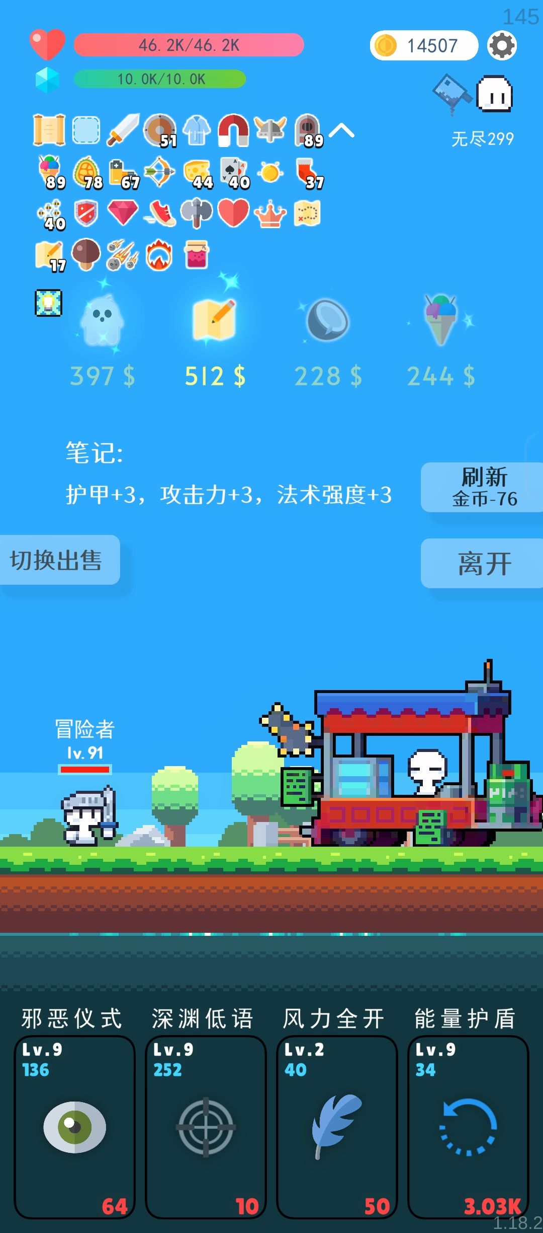 刷到的金币买 护甲 敌人数量 技能极速 伤害增加四类物品