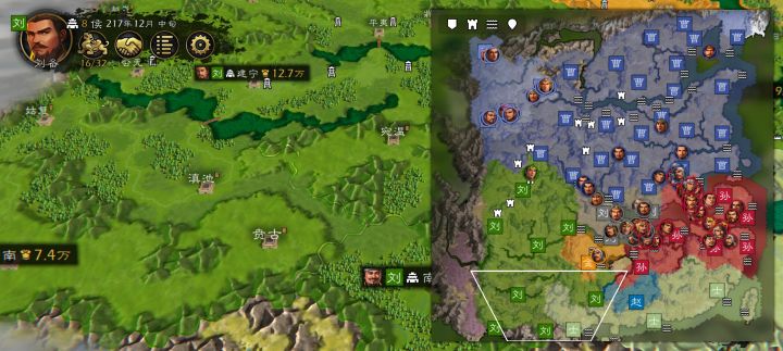 第一个回合最重要的肯定是先派人占领永安,不要升科技,直接派人去和刘璋结盟,我是留下了四点第二回合升精舍,上庸就没必要了挑战的刚占领完对方就会派兵,结盟距离到达一个月的时候手动存档保证成功,你刚好和他结盟成功你的兵刚好占领永安,不要进城直接马不停蹄去占领建宁,这样南中这片地就是你的了,新野不用死守一直运输去永安就行了,前一年多曹操不会派大部队,后面守不了就搬空走人,科技我是先一个精舍再来漕运,发展数年就可缓图刘璋(前期一定不能错哦挑战难度下开局不能占领这几城那直接没戏了)(注意刘表不能灭人机暴兵太厉害了如果你和曹操接触的地方太多你更本没有那么多资源去应对就算有也太浪费自己时间了,灭了刘璋后往汉中方向发展)