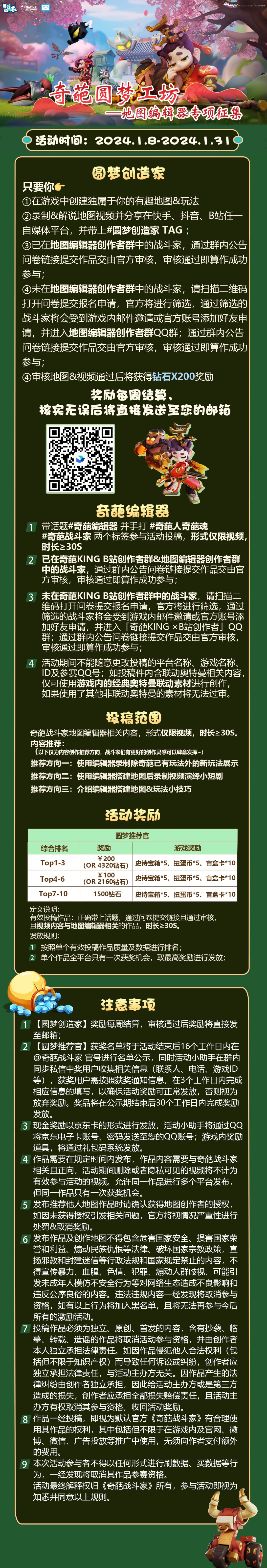 【奇葩工坊】编辑器专项征集启动!投稿就领200钻石~