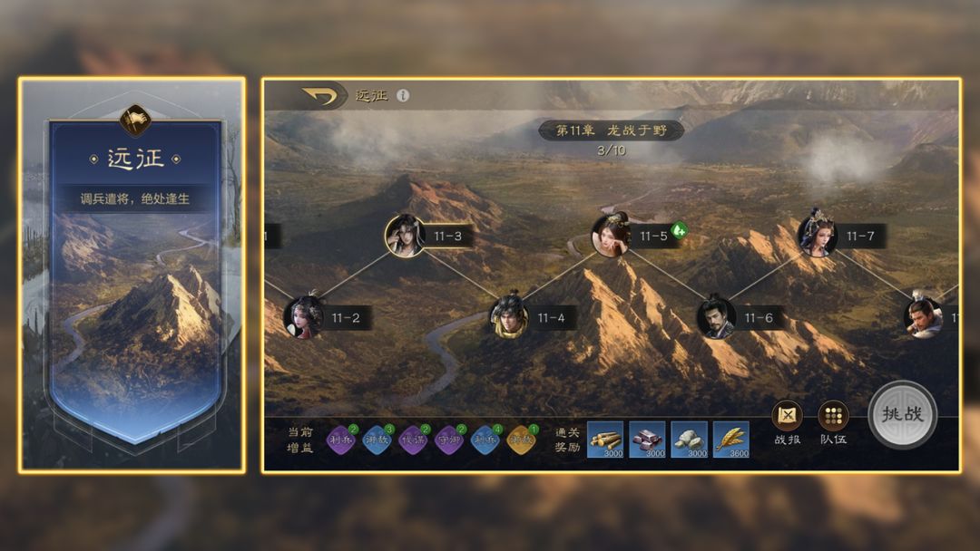 征战包括远征与军演两种玩法,均能获取丰厚资源。