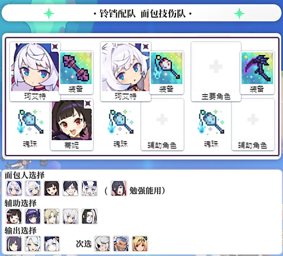 对于没有面包角色的小伙伴们那就退而求其次组纯技伤即可,黑猫主c