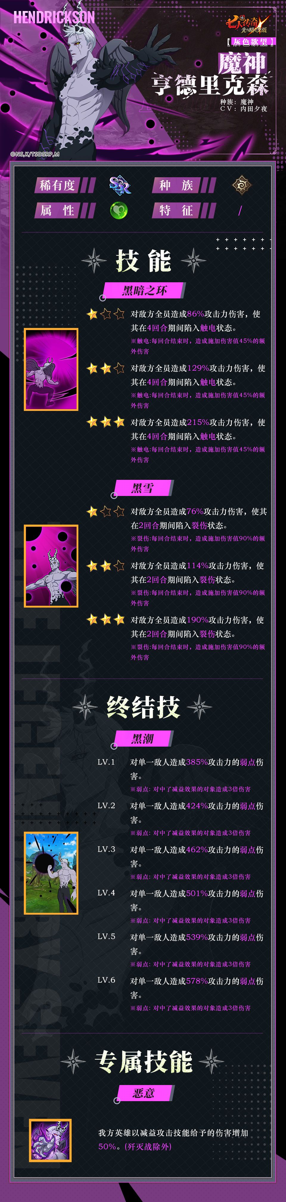 ☛【灰色欲望】魔神 亨德里克森拥有可以持续给予对方伤害的减益攻击技能,并能使得我方英雄通过减益攻击技能造成的伤害获得额外提升,对敌人而言是个相当麻烦的对手。