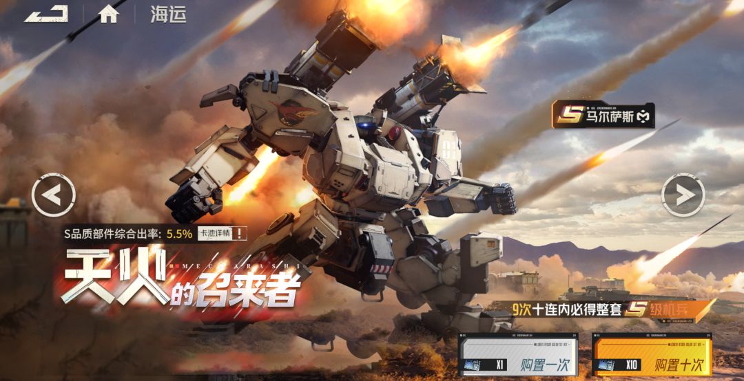特选购置-「天火的召来者」开启,活动期间可获取机兵「马尔萨斯」,且概率大幅提升!