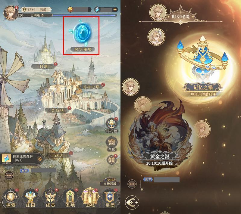 首先要跟大家介绍的是位于【王城-时空秘境】中的【记忆之锚】玩法,每周二、四、六的12:00-24:00各位族长可以打开王城时空秘境参加本活动。【记忆之锚】主要产出我们研习传承秘法需要用到的【血脉结晶】与【凯斯火种】,有些族长看到这个限时可能就有些担心,自己可能没那么多时间去打。实际上,每一期记忆之锚各位族长大人都可以在5分钟之内就能拿满奖励。