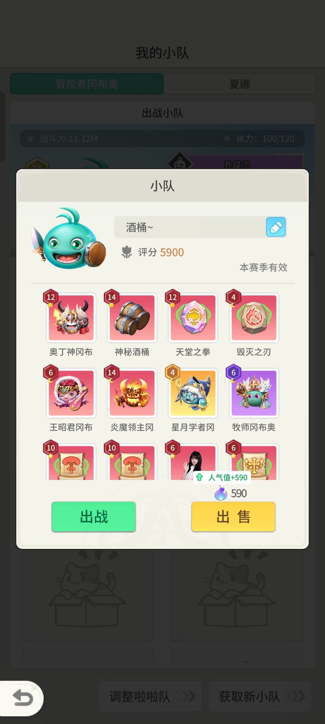 首先我们来看一下阵容搭配,里面比较关键的就是酒桶、炎魔、复活,大致思路就是利用炎魔召唤小兵+复活拖延时间,来赌酒桶多敲几下,请忽略我的奥丁和天堂之拳,纯属当时刚拿到奥丁心血来潮