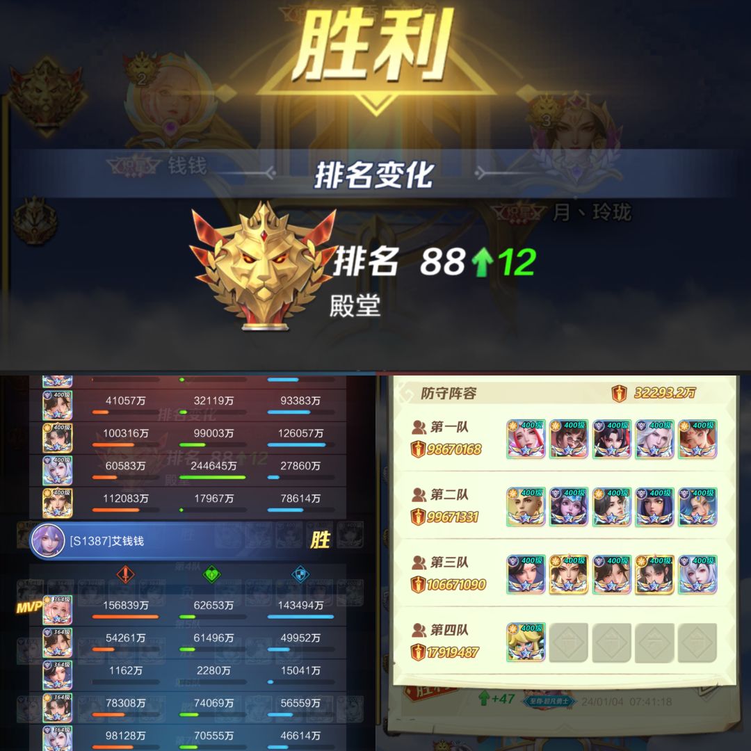 十星20潜是有防止被越的能力的,我养了个小号体验一下0氪【现在基本0氪长时间一点的服务器都到了7000W了哈,这个号是今年6月停氪的,盛世系列玉环之后就没再氪了】的感觉,因为还没有气运+3,所以9000W经常被7-8000W越,换上十星20潜少司命后,原来55开的对局现在测了20把,15-5,胜率来到了75%。