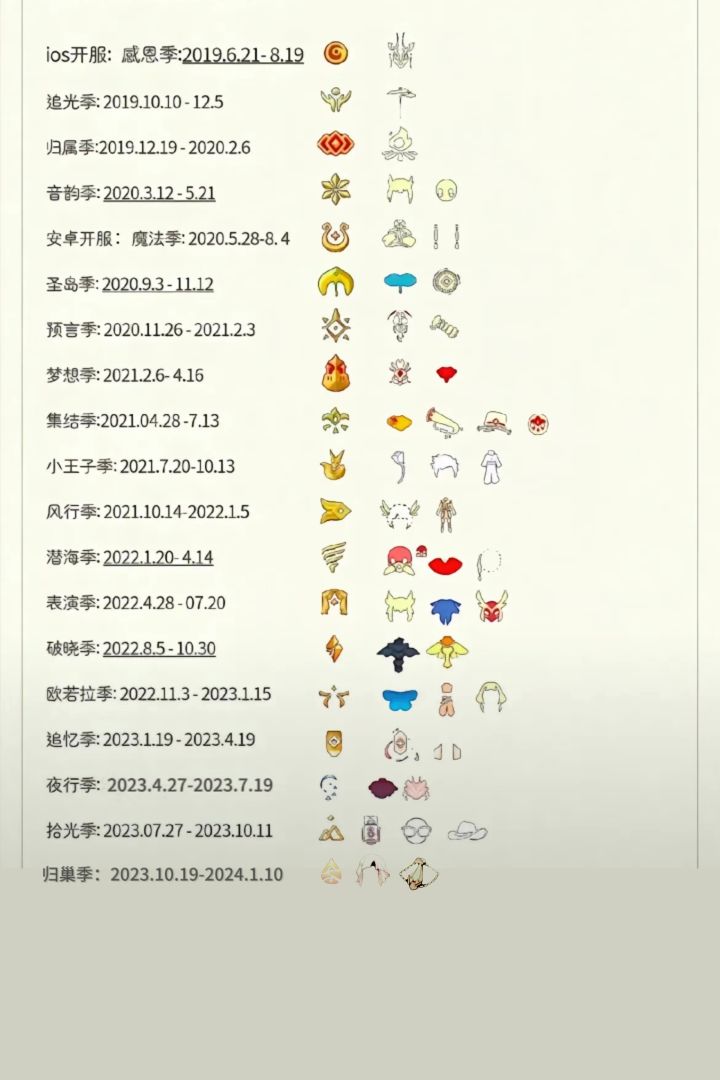 光遇至今全季节顺序
