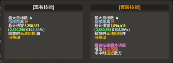 适用于多种场合使用的技能,释放时无法阻挡状态可移动,激活组合技时可增加攻击范围,命中时拉近敌方。