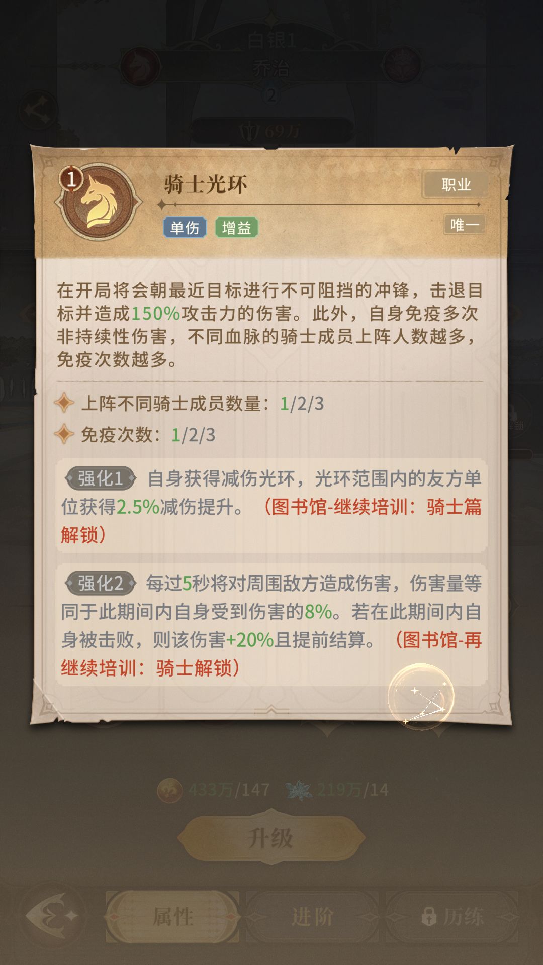 搭配被动技能【威震】的效果。在有队友能够提供稳定“眩晕”控制敌人时,先民骑士将拥有强大的输出能力,在破坏敌方阵型的同时快速清理战场。