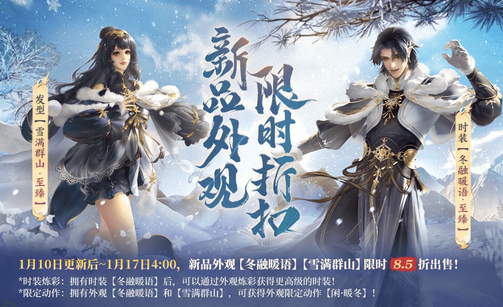 ●活动内容:上架新品【稀有发型·雪满群山】与【稀有外观·冬融暖语】,限时8.5折,活动结束后恢复原价。