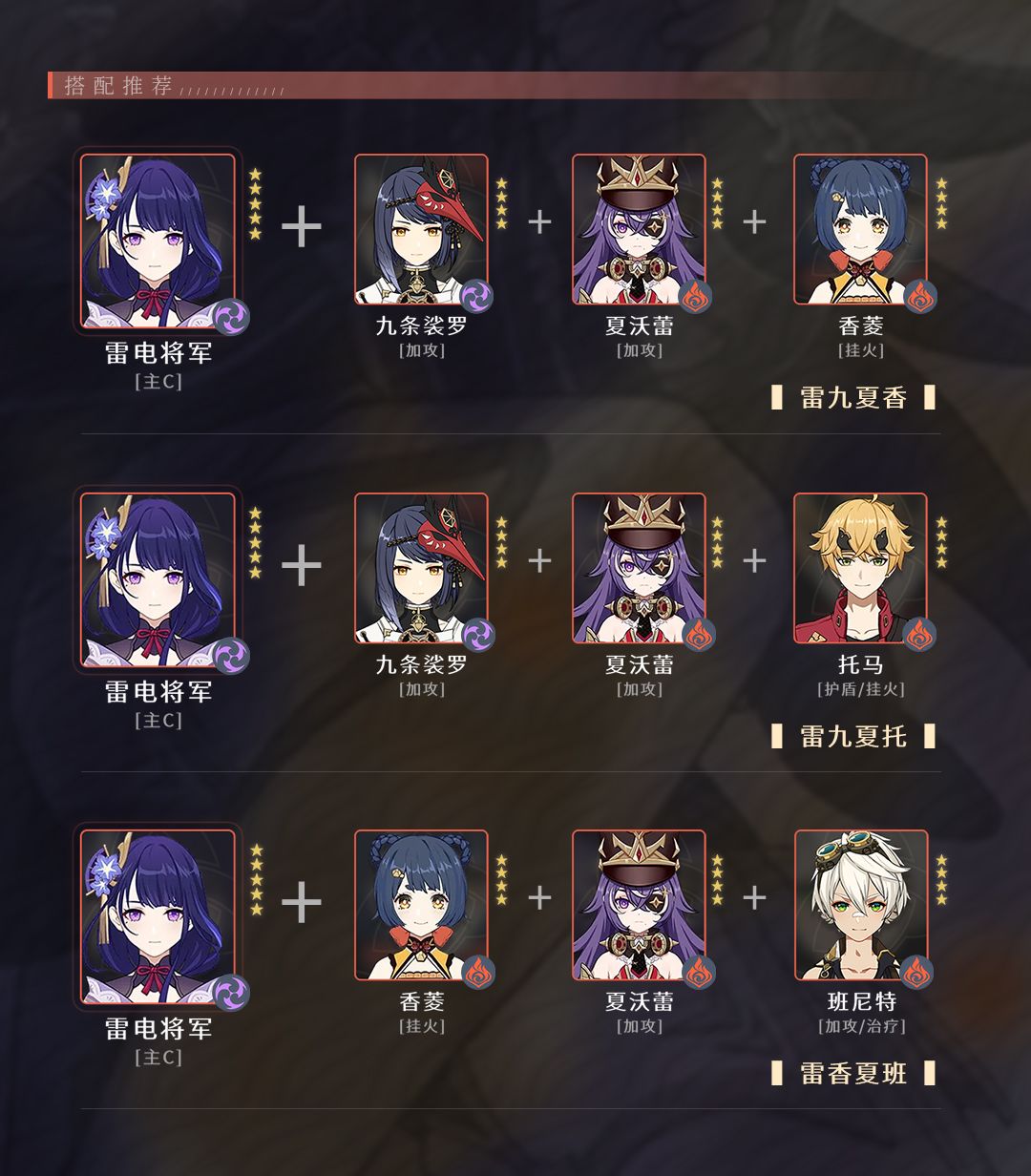 不过当前超载队不是配队主流,应用范围有限。根据以往经验,后续版本可能会推出新的火雷角色,新角色的配队可能会和超载有关,推荐大家先抽取到夏沃蕾,后续根据新角色实际情况决定夏沃蕾要不要补命座。