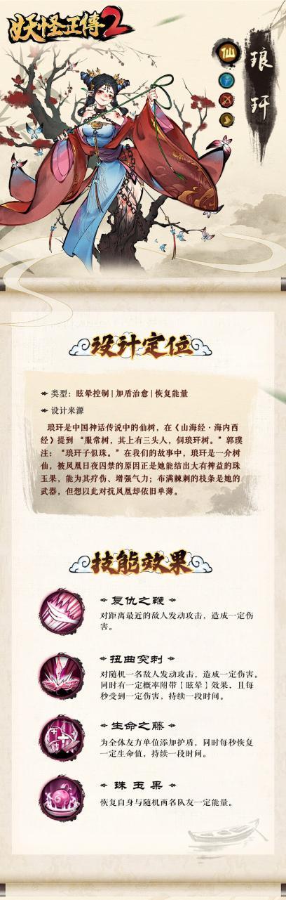 琅玕,是中国神话传说中的仙树,在《山海经·海内西经》提到 “服常树,其上有三头人,伺琅玕树。”郭璞注:“琅玕子似珠。”在我们的故事中,琅玕是一介树仙,被凤凰日夜囚禁的原因正是她能结出大有裨益的珠玉果,能为其疗伤、增强气力;布满棘刺的枝条是她的武器,但想以此对抗凤凰却依旧单薄。