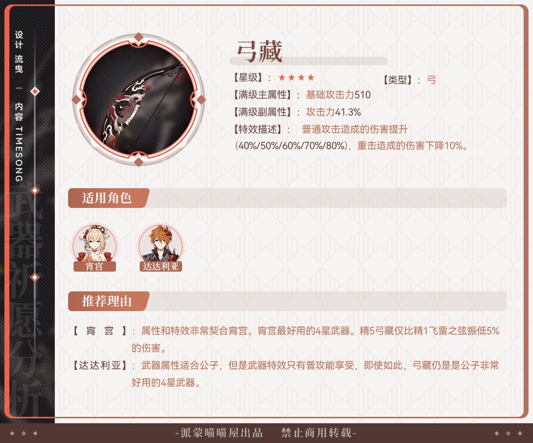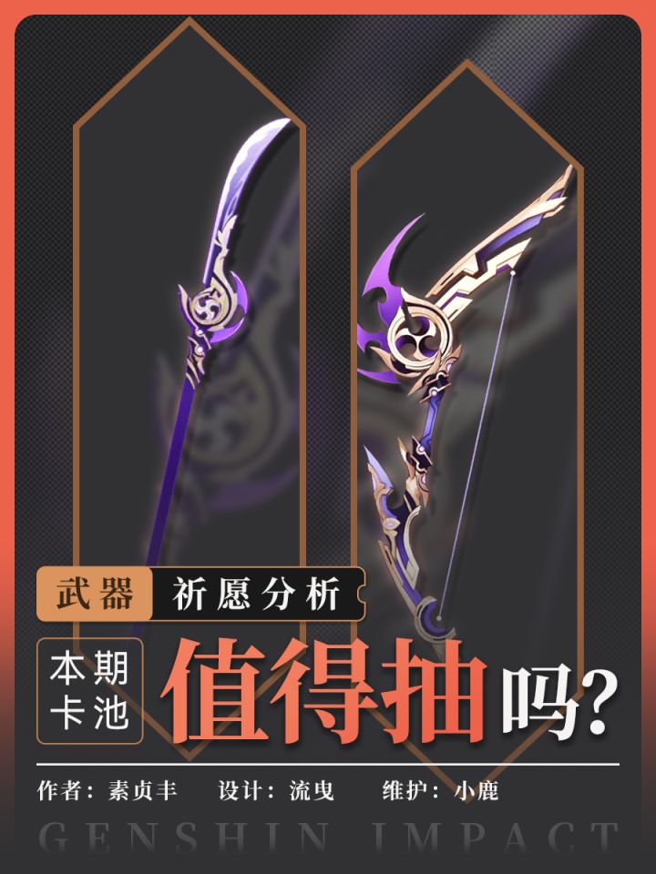 这个武器池看似有着UP角色配套的五星武器和下位四星武器,第一眼看过去还可以。但是UP角色对于专武的需求并不高,除非想要让雷神宵宫伤害精益求精,否则这个池子完全可以跳过。