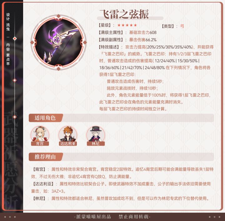 飞雷之弦振可以给宵宫抽取,不过精5弓藏的伤害仅比精1飞雷之弦振低10%,显得飞雷之弦振就没那么珍贵了。