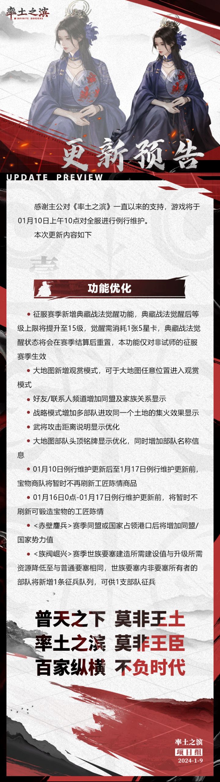 《率土之滨》01月10日例行更新预告